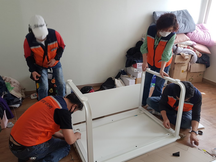 이날 봉사에는 우상연 회원을 비롯해서 박준영 연순옥 오명옥 유희자 회원들이 초·중·고 다자녀 편부가정에 책상과 의자를 설치를 하였다.