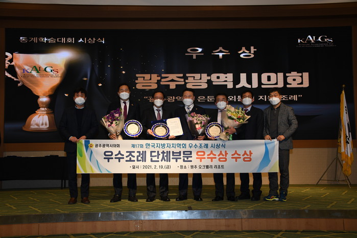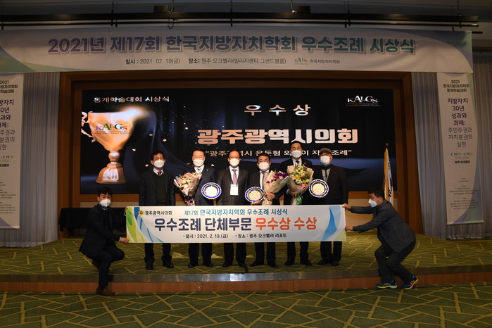 [광주=세계타임즈 손권일 기자] 광주광역시의회(의장 김용집)는 19일, 원주 오크밸리 리조트에서 열린 한국지방자치학회 주관「제17회 지방의회 우수조례」시상식에서 단체부문 ‘우수상’, 개인부문 ‘우수상’과 ‘장려상’을 수상하였다.