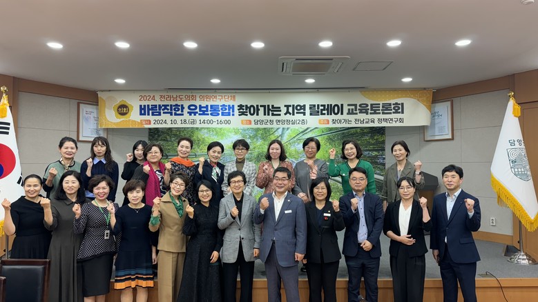 [전남 세계타임즈=우덕현 기자] 전라남도의회 안전건설소방위원회 박종원 의원(더불어민주당·담양1)은 지난 10월 18일(금) 담양군청 면앙정실에서 개최된 ‘바람직한 유보통합! 찾아가는 지역 릴레이 교육토론회’에서 좌장을 맡아 토론을 진행했다.