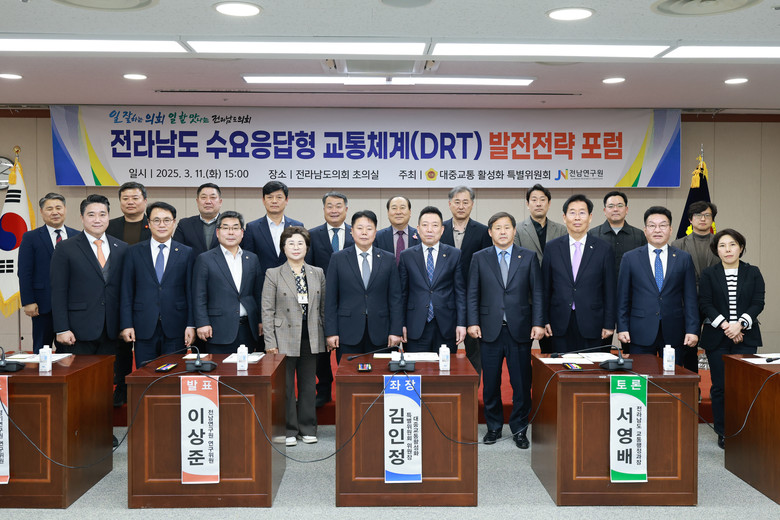 [전남 세계타임즈=우덕현 기자] 전라남도 대중교통 활성화 특별위원회(위원장 김인정, 진도)는 지난 3월 11일, 전남도의회 초의실에서 ‘전라남도 수요응답형 교통체계(DRT) 발전전략 포럼’을 개최했다.