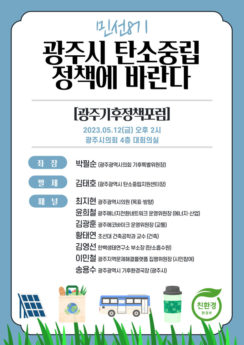 이번 포럼은 광주시 민선8기 탄소중립 정책에 시민들의 제안이 반영될 수 있도록 제안하는 자리로 마련됐다.