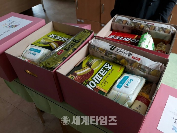 이날 사랑나눔 상자는 식용유, 참기름, 초코과자 등 생필품과 간식 등 남녀노소 모두가 좋아할 수 있는 품목들로 구성되었으며 상자 안에는 이웃의 따뜻한 마음도 고스란히 담겨있다.