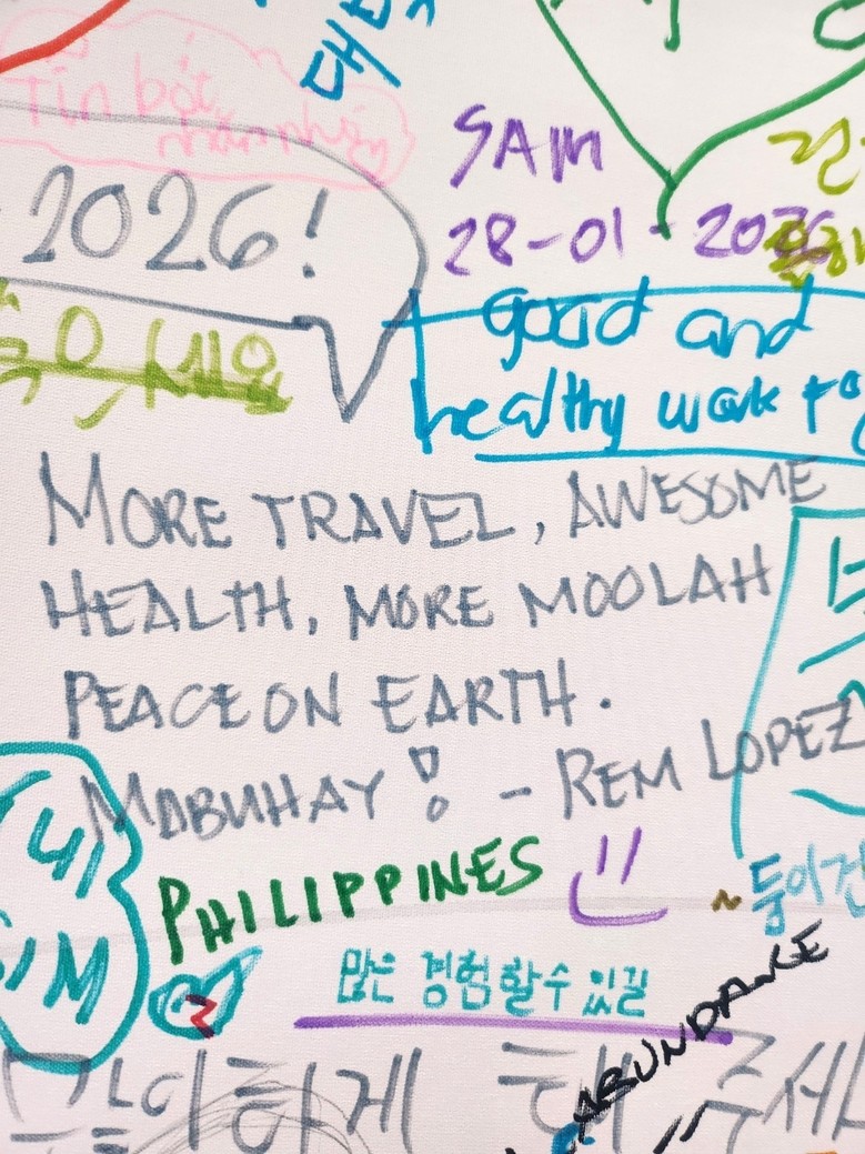 “사업이 번창하고 사랑하는 사람과 더 많이 여행하길(Have a successful business, more travel with love)”, “한국과 일본을 자유롭게 오가며 더 행복해지고 싶다(Multiple entry Korea Japan... more happiness!)”, “최고의 건강과 지구촌의 평화를 기원한다(Awesome health, Peace on Earth! Mabuhay!)” 등 가족의 행복과 인류의 평화를 바라는 마음은 국경을 초월해 하나로 모였다