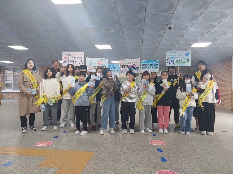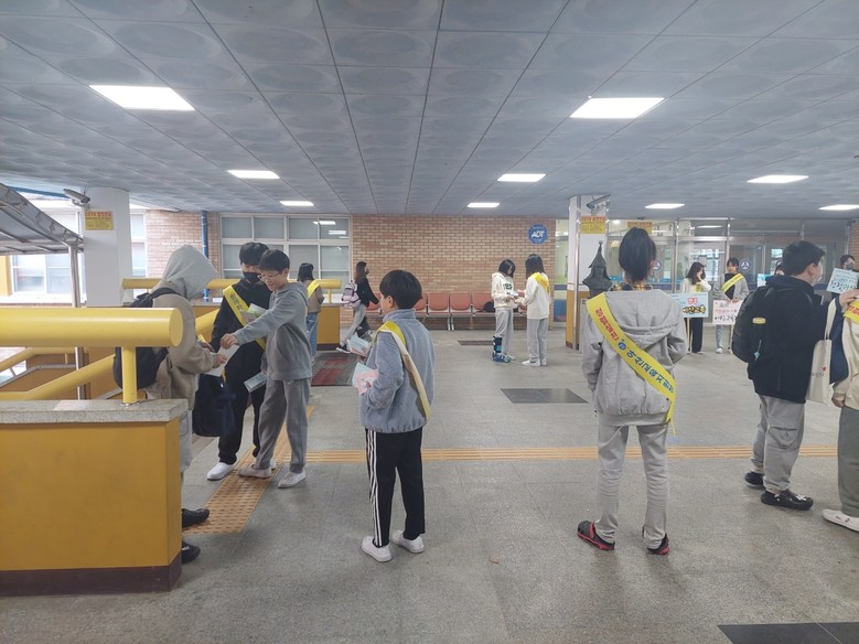 이날 캠페인은 등굣길 학생과 학부모를 대상으로 학생회 어린이들과 교직원이 함께 청렴교육을 홍보하는 팜플렛과 물티슈를 전달하며 진행되었다.