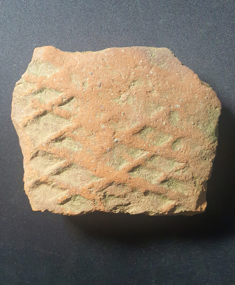 정연한 사격자문의 이 평 와편은 태토가 고우며 모래가 많이 섞이지 않았다. 흡사 김포 문수산성, 고양시 고봉산성, 포천 반월성. 연천 고모루성 등 고구려 성지에서 찾은 사격자문과 흡사했다. 특히 국립중앙박물관에 소장 된 평양근교 출토의 격자문 적색 평와를 닮고 있다.