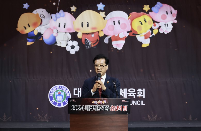 [대전 세계타임즈=이채봉 기자] 대전시의회 조원휘 의장은 19일 호텔ICC에서 개최된 ‘2024 체육가족 송년의 밤’를 찾아 “올 한 해 더욱 빛났던 대전 체육의 성과는 모두 선수들이 대회를 준비 하며 흘린 값진 땀방울의 결실”이라며 선수들을 격려하고, “오늘 마련된 자리를 통해 그간의 성과를 돌아보며 서로 격려하고 소통하는 뜻깊은 시간 되시길 바란다”며 행사 개최를 성원했다.