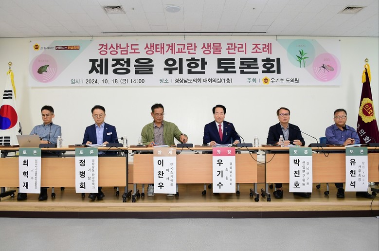 [경남 세계타임즈=최성룡 기자] 경상남도의회 우기수(국민의힘, 창녕2) 의원은 18일 도의회 대회의실에서「경상남도 생태계교란 생물 관리 조례」제정 토론회를 개최했다.