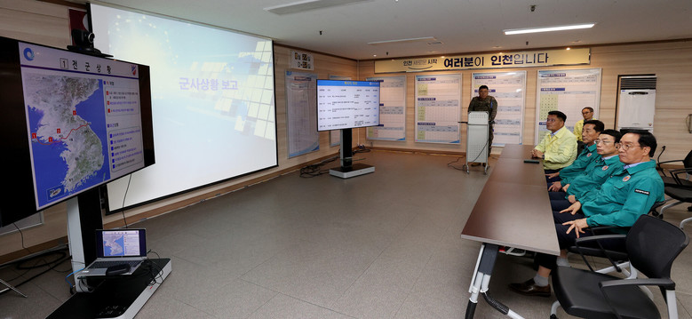 이날 인천시의회에서는 허식 의장을 비롯해 이봉락 제1부의장, 신동섭 행정안전위원장, 한민수 의회운영위원장 등이 함께 했고, 이들은 2일차 상황 보고, 전시 대비 태세 대응 등의 보고를 받았다.
