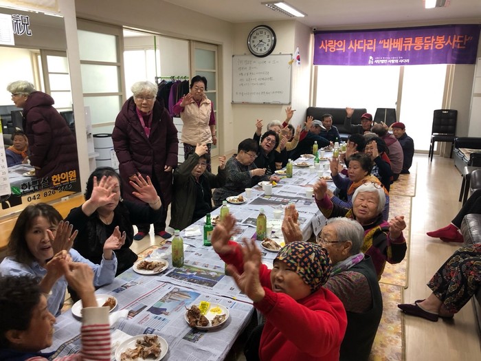 박귀수 노은3동장은 “오늘 사랑의 사다리 밴드에서 4곳의 경로당에 현장에서 직접 구은 바비큐 통닭을 지원해주셔서 감사하다,“고 말했다.