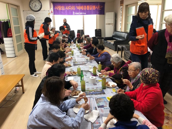 신상일 통닭 봉사 단장은 “경로당 어르신들께서 바비큐 통닭을 맛있게 드시는 모습에서 행복과 보람을 느낀다.“고 말했다.