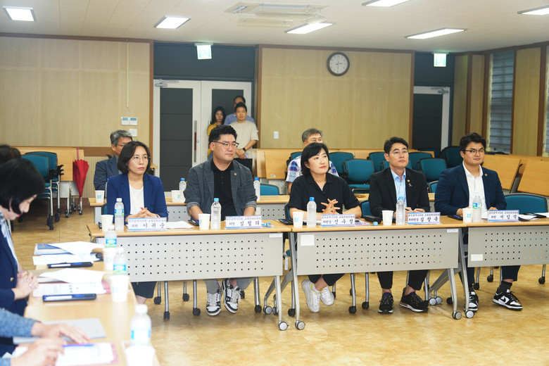 먼저 교문위 위원들은 설립추진단을 방문하여 진흥원 설립 추진 현황 및 부서별 주요 업무 현황을 청취하고 학교폭력 심의실, 금란교실 등 주요시설을 둘러보았다. 특히 위원들은 전국 최초로 출범하는 교육청 산하 협치 전담기관인 만큼 학부모, 시민, 사회단체, 지자체의 협치를 통한 실천적 의제를 발굴에 힘써줄 것을 당부했다.