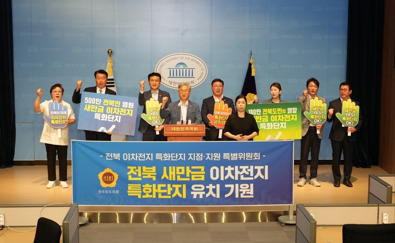 기자회견에 나선 전북도의원들은 “대한민국 이차전지의 초격차 기술개발을 확보하고 세계 1위의 위상을 공고히 하려면 그 중심엔 성장 가능성이 무궁무진하고 이차전지로 특화된 새만금이 꼭 필요하다”라고 강조했다.