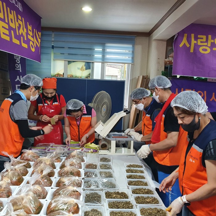 이날 봉사에는 유희자 나눔봉사단장을 비롯해서 발열체크한 자원봉사자 15명이 마스크와 위생모를 착용 후 열무김치, 고추장돼지고기 볶음, 몇리꽈리고추 볶음 3가지를 만들어서 부자가정 5명, 지체장애인 10명, 시각장애인 10명 등 30가정에 직접 배달봉사로 마무리 하였다.