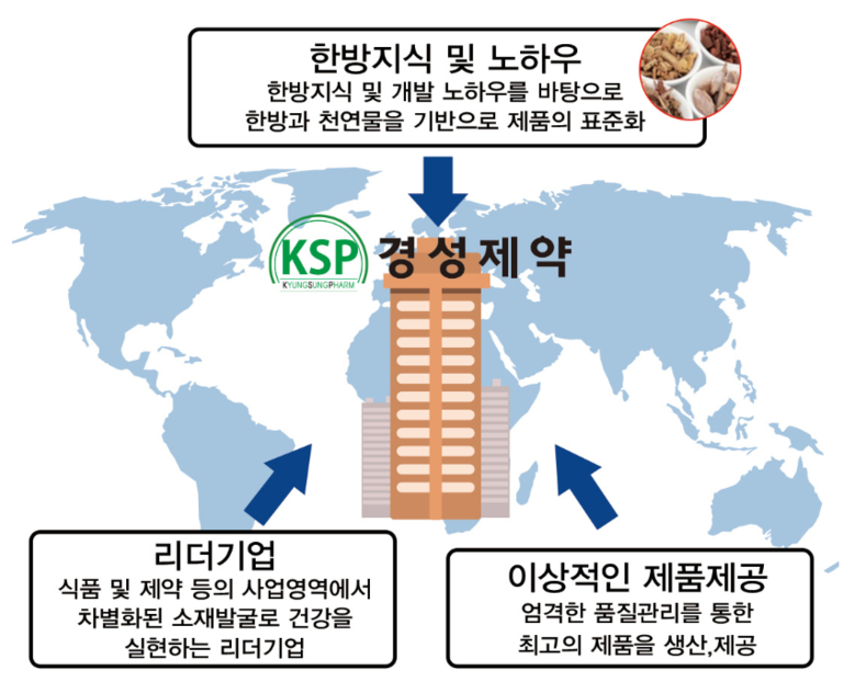 경성제약은 현대의학의 한계를 보안할 수 있는 건강법을 지향하며, 현재 의학과 대체의학의통합, 식품과학화를 통하여 인류의 건강과 생명을 지키는 파수꾼이라 자부한다.