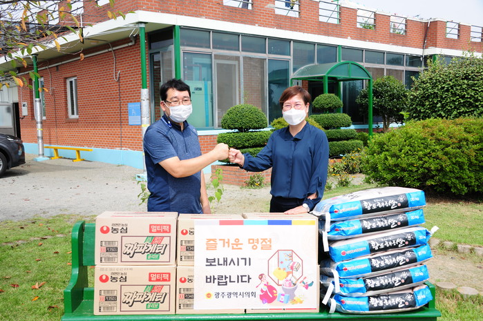 [광주=세계타임즈 손권일 기자] 광주광역시의회 김나윤 교육문화위원장이 13일 오후 추석 명절을 맞아 북구 대촌동에 위치한 '밀알의집'을 방문해 위문품을 전달하고 관계자들을 격려했다.