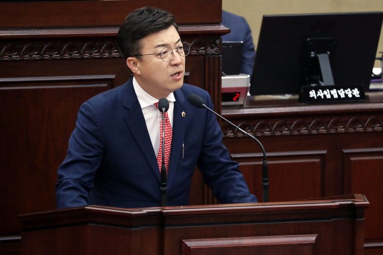 이 의원은 마지막으로 “수해를 구실삼은 정쟁에는 도민이 보이지 않는다”면서 도민의 안전을 담보로 정쟁하지 말 것을 요청했다. 이어 어떤 명분을 앞세우더라도 수해 복구보다 정쟁이 우선일 수 없다고 거듭 당부하며 5분 자유발언을 마무리했다.