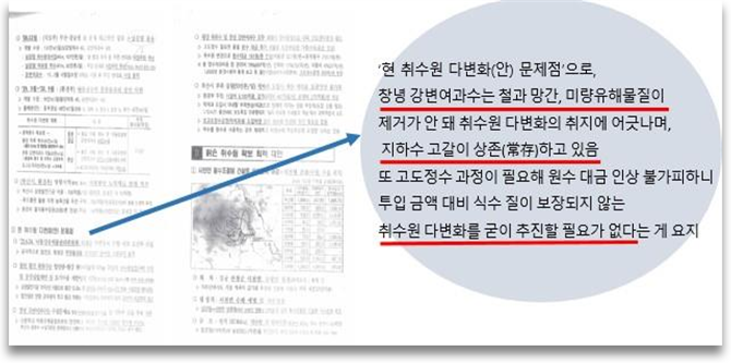 또, 창녕 강변여과수와 황강 복류수 모두 재래식 정수공정으로는 부족하기 때문에 고도 정수공정이 필요하며 때문에 원수대금이 인상되어 시민부담만 가중된다고 주장했다. 요컨대, 잠재적인 위험이 있는데다 요금까지 인상된다면 ‘안전하고 깨끗한 식수 공급’이라는 취수원 다변화 취지가 무색해진다는 결론이다.