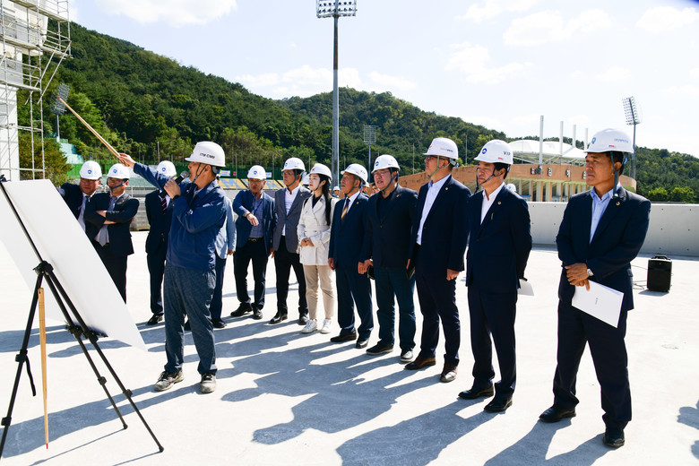 먼저, 김해시 전국체전 주경기장 건설현장을 방문하여 김해시로부터 공사추진 현황을 보고받은 후 현장을 점검했다. 업무보고를 받은 예결위원들은 공사안전관리 철저, 주경기장 사후 활용방안 마련, 국비 추가 확보 등을 당부하였다. 또한 박성도 위원장(진주2, 국민의힘)은 “경남에서는 14년 만에 열리는 전국체전이니만큼 성공적으로 개최될 수 있도록 대회 준비에 만전을 기해 달라”고 말했다.