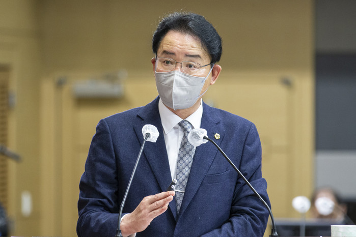 도정질문을 통해, 시행자인 경북개발공사와 추진중인 협약상 총 사업비 3,165억원 중 국비 355억원 포함한 1,850억원을 시가 부담하고, 사업 지구외 진입도로 건설비 289억까지 부담해, 최종적으로 작은 기초지자체인 영주시가 5년간 2,139억원이라는 막대한 금액을 부담하게 된다고 밝히며, 이철우 도지사의 적극적인 국비확보 노력과 도비 지원을 촉구했다.