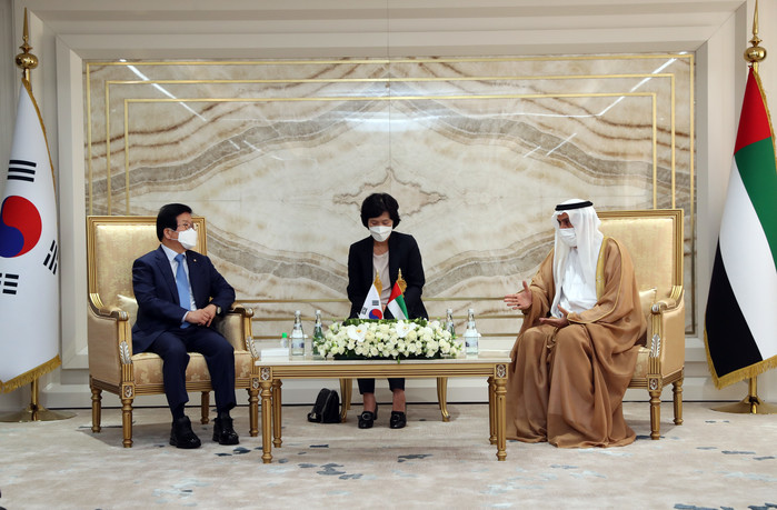 이에 박 의장은 “한국에 어려울 때 도와주는 친구가 좋은 친구라는 말이 있다”고 소개한 후 “한국과 UAE가 이런 친구관계를 발전시켜 나갈 것이라”고 답했다.