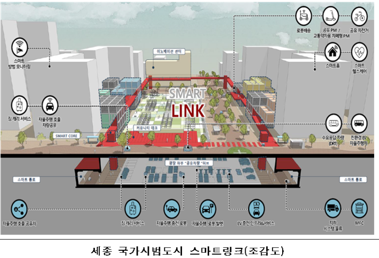 스마트방범, 스마트교차로, 스마트버스정류장, 스마트폴, 스마트주차, 대기오염‧미세먼지 감시‧정보, 초정밀버스정보시스템, 세종엔 포털 등또한, 국가시범도시는 2028년 하반기 입주를 목표로 모빌리티, 헬스케어 등 7대 혁신 요소를 반영한 21가지 특화 서비스를 제공할 예정이며, 특히, 자율주행·수요응답형교통·퍼스널모빌리티 등 혁신적인 모빌리티 대표 서비스를 도입할 것이다.