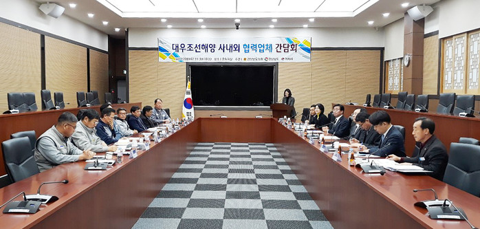 [경남=세계타임즈 이판석 기자] 경상남도의회 김성갑 경제환경위원장은 19일(화) 거제시청에서 경상남도 문승욱 경제부지사, 옥은숙 도의원, 허동식 부시장 등이 참석한 가운데 대우조선해양 사내외 협력업체 대표와의 간담회를 개최하였다.