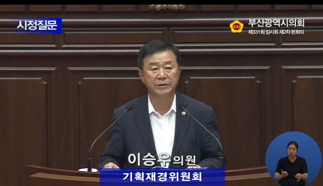 [부산 세계타임즈=이용우 기자] 부산광역시의회 기획재경위원회 이승우 의원(국민의힘, 기장군2)은 9월 1일, 제331회 임시회 제2차 본회의에서 시정질문을 통해 ▲2005년 추모공원 건립 당시 주민과의 약속 사업인 회동상수원보호구역 전면 해제 불이행 등 주민과의 약속 이행 문제 ▲노포역 일원 종합개발 및 KTX 노포역 신설 추진 ▲부산시 부서 간 소통 부재 문제 등을 집중적으로 지적하며, 시의 책임 있는 대책 마련을 촉구했다.