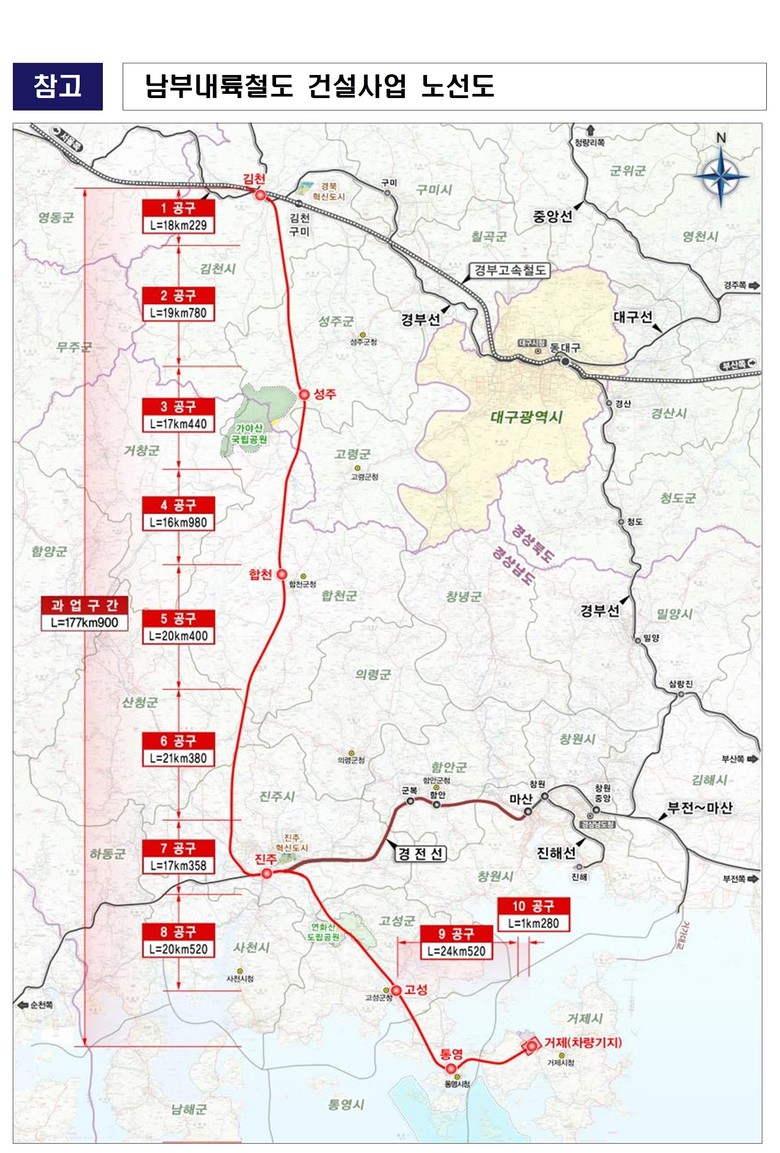 남부내륙철도 사업은 국가균형발전 핵심 인프라로서 경남도민 50년 숙원사업으로 2022년 1월 기본계획 고시와 기본 및 실시설계를 마쳤으나, 작년 기획재정부가 당초 대비 사업비가 증가한다는 이유로 한국개발연구원에 사업계획 적정성 재검토를 요청한 바 있다.