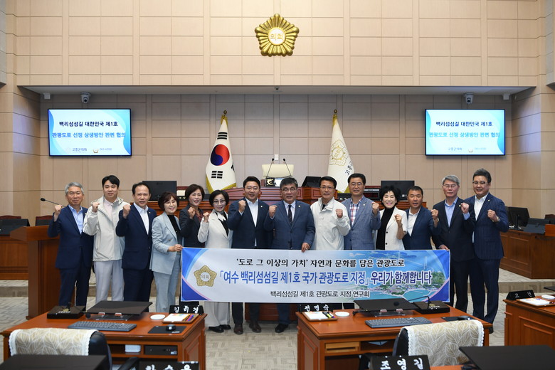 [고흥군 세계타임즈=우덕현 기자] 고흥군의회(의장 이재학)는 5월 31일 여수시의회와 소회의실에서 고흥 영남 팔영대교를 시작으로 여수 돌산에 이르는 11개 다리 구간인“백리섬섬길” 대한민국 제1호 관광도로 지정을 위해 협의 자리를 가졌다.