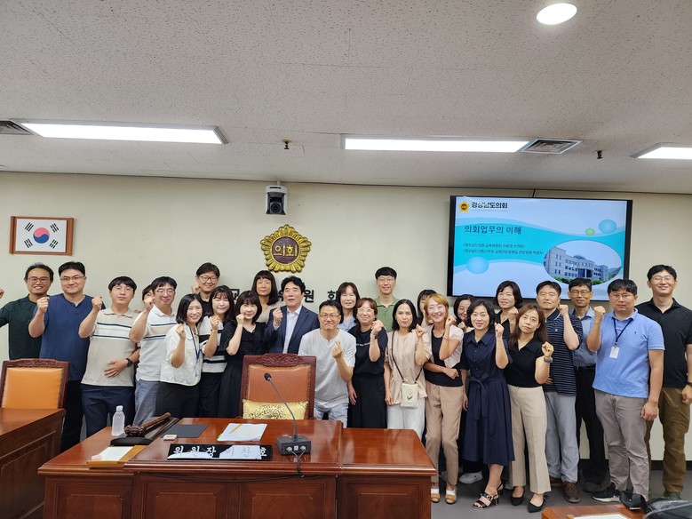 이날 현장에서는 교육생들은 의회의 업무에 대한 이해를 높혔으며 실무자들의 애로사항에 대한 개선방안 도출과 하반기 교육 주요 현안에 대한 심도있는 대한 논의도 이루어졌다.