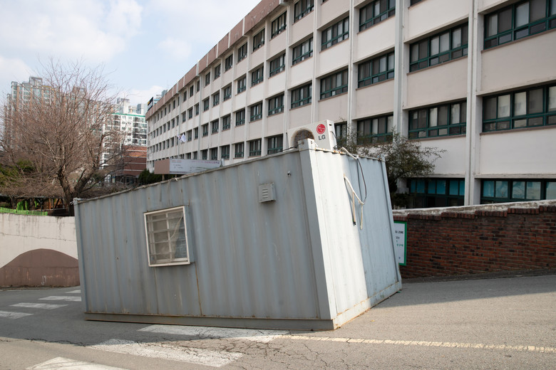 | ▲ 대광여고 앞 통학로를 막고 있었던 콘테이너 철거 전 사진 |