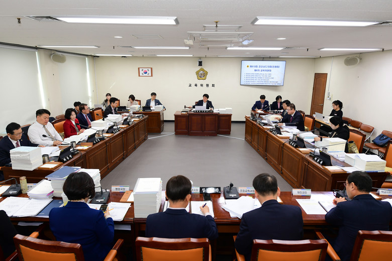 [경남 세계타임즈=최성룡 기자] 2일 경남도의회 교육위원회(위원장 이찬호)는 제419회 정례회 제4차 교육위원회를 개최하여 경상남도교육청 미래형 교육시설 조성 조례안, 경상남도교육청 경계선지능 학생 지원에 관한 조례안, 경상남도교육청 학교 화재예방 및 안전관리 조례안 등을 원안 가결하고 2025년도 경상남도교육비특별회계 예산안, 2025년도 경상남도교육청 기금운용 계획안을 심사했다.
