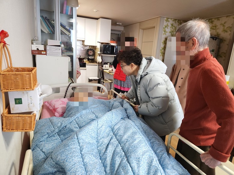 이번 방문은 일상생활 전반에 어려움을 겪고 있는 위기 가구를 대상으로 진행됐다. 해당 가정은 배우자가 뇌병변 장애로 장기간 누워서 생활하고 있는 아내와 하지 지체장애가 있는 노인으로 구성된 부부 가구로, 서로를 의지하며 힘겹게 생활하고 있는 상황이다.