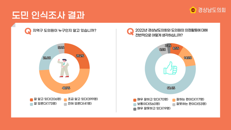 경상남도의회(의장 김진부)는 ‘2023년 경상남도의회에 바란다!’ 도민 인식조사를 지난 12월 1일부터 20일까지 실시하고 그 결과를 27일 발표했다.
