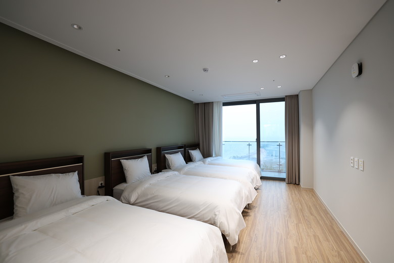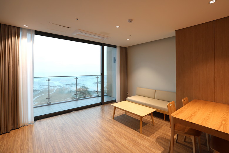 옥상 루프탑에서는 서해안이 한눈에 내려다보이는 탁 트인 전망을 즐길 수 있고, 야외 수영장, 식당, 편의점, 자가취사장, 코인세탁실 등 다양한 부대시설도 완비돼 있다.