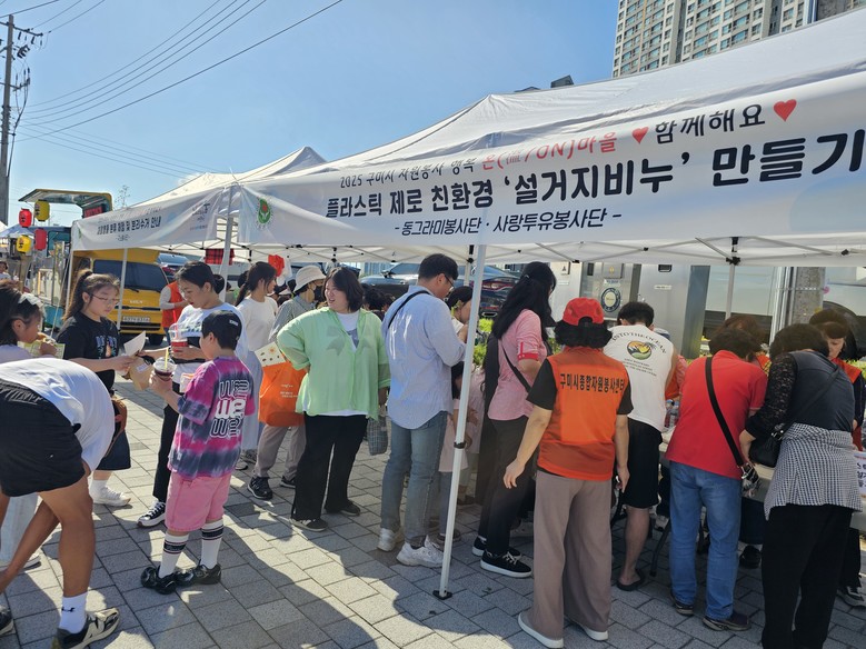 현장에서는 구미시 자원봉사 캐릭터 ‘자봉이’를 활용한 굿즈 만들기를 비롯해 △에코 플로깅 △공기정화 수경재배 식물키우기 △친환경 설거지 비누 만들기 △양말목 업사이클링 △솜사탕·팝콘 나눔 △손 마사지 재능봉사 등 다양한 프로그램이 운영됐다. 이를 통해 생활 속 환경 보호의 중요성을 알리고, 미래 세대를 위한 건강한 마을 환경 조성에도 힘을 보탰다.
