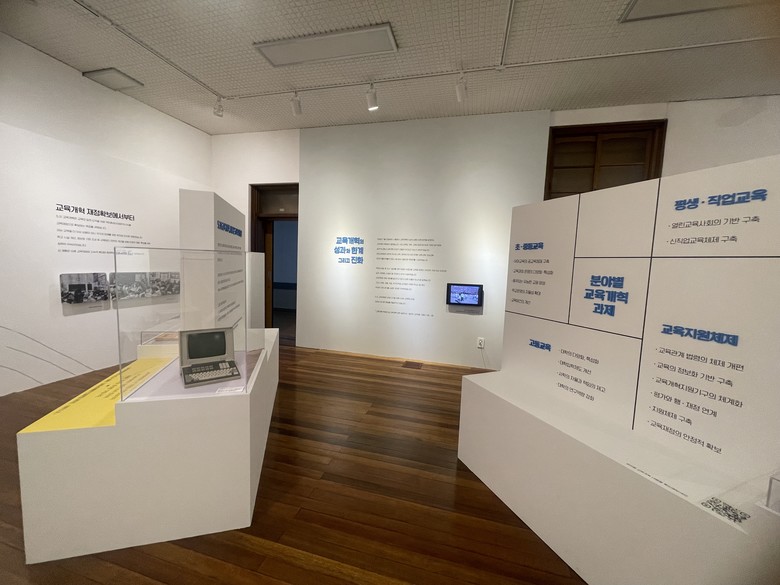 전시 구성은 교육 개혁 당시 제작된 문화영화 <열린 교육>을 주축으로 세계화 및 정보화 교육, 학교운영위원회 도입, 교육 재정 확대 등 핵심 정책들을 다룬다. 관람객들은 이를 통해 현재 시행 중인 교육 정책들의 기원과 발전 과정을 심도 있게 이해할 수 있다. 주요 전시 유물로는 당시의 시대상을 보여주는 교육 개혁 자료집을 비롯해 CRT 모니터, 하이텔 단말기, 대덕초 컴퓨터 통신 설비 계획서 등이 전시된다