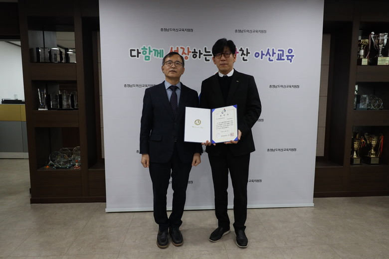 [아산시 세계타임즈=이현진 기자] 아산교육지원청(교육장 신세균)은 1월 16일(금) 학생들의 진로 탐색과 미래 역량 강화를 위해 적극적으로 진로체험 프로그램을 운영한 공로를 인정하여 진로체험처 초록잎담뿍과 순천향대학교에 우수 진로체험처 교육감 표창장을 전달하고 격려했다.