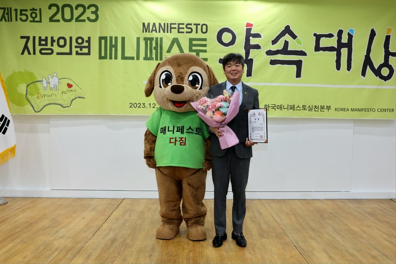 매니페스토 약속대상은 지방의회의 역량 강화와 주민 신뢰 기반 구축을 위해 사단법인 한국매니페스토실천본부가 주최하고 시상하는 상으로 그 의미가 남다르다.