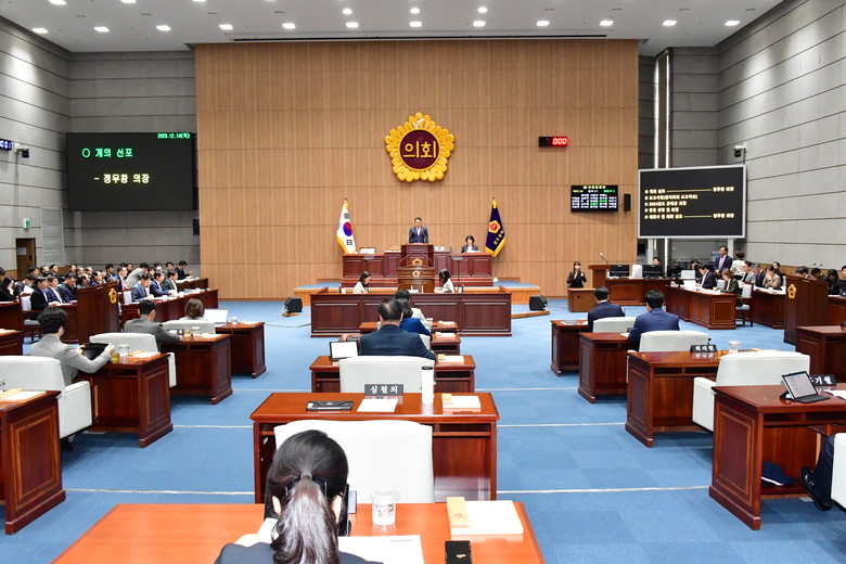 - 광주광역시 및 시교육청 2024년도 본예산, 2023년도 제3회 추경예산 정리 [세계타임즈=광주 손권일 기자] 광주광역시의회(의장 정무창)는 12월 14일 오전 10시, 시의회 본회의장에서 제321회 제2차 정례회 제4차 본회의를 개최했다. 44일간 진행된 이번 회기를 마지막으로 2023년도 연간 회의운영계획에 따른 모든 의사일정이 마무리 되었다.