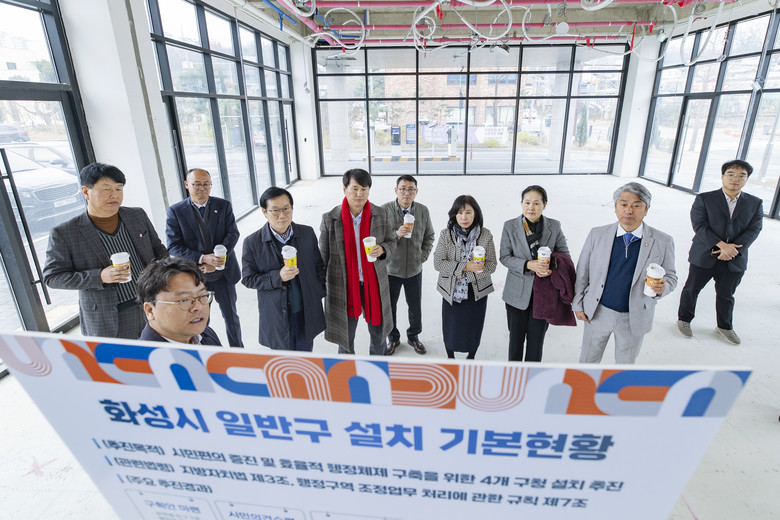 [화성시 세계타임즈=송민수 기자] 화성특례시의회 기획행정위원회는 25일, 2026년 2월 1일 효행구 출범을 앞두고, 임시 구청사 조성 사업 추진 상황을 점검하기 위해 공정 현장(봉담읍 분천리 일원)을 방문했다.