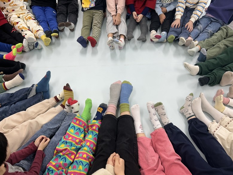 또한, 가정과 연계하여 유아들이 짝짝이 양말을 신고 유치원에 등원하는 특별한 활동을 진행하고 , 함께 ‘짝짝이 양말 파티’를 열었다. 아이들은 다름을 존중하고 서로를 배려하는 마음을 자연스럽게 키울 수 있었다. 활동을 마친 후, 각 연령별 작품을 게시하고 사진을 전시하여 학부모들이 활동에 함께 참여한 듯한 느낌을 받을 수 있도록 했다.