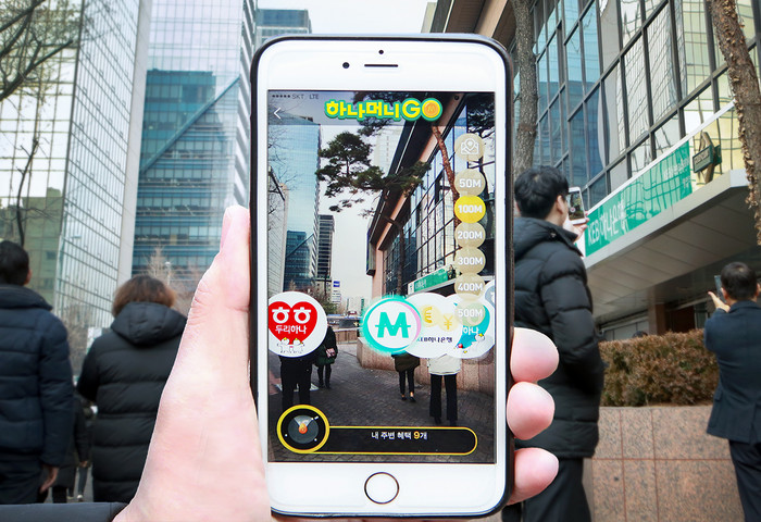 ‘하나머니GO’는 작년 한 해 전 세계적으로 열풍을 몰고 온 휴대폰 용 게임인 포켓몬GO와 같이 스마트폰의 위치 검색기능에 기반한 증강현실을 제공한다.