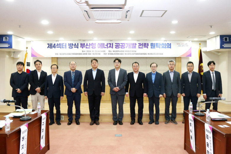 [부산 세계타임즈=이용우 기자] 성창용 부산광역시의회 기획재경위원장은 김태효 의원, 김형철 의원 반선호 의원과 함게 23일 부산시의회 의원회관 회의실에서 「부산 분산형 자급자족 에너지 인프라 개발 및 확충을 위한 전략 원탁회의」를 개최하였다.