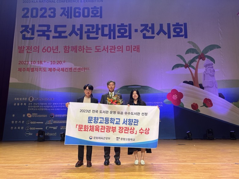 우수도서관으로 선정된 문향고는 지난 10월 18일 제주국제컨벤션센터에서 열린 제60회 전국도서관대회에서 ‘문화체육관광부 장관상’을 수상했으며, 우수도서관 인증마크 현판을 받는다.