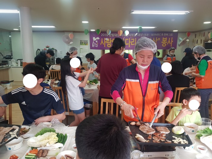 [대전=세계타임즈 이채봉 기자] 대전시 SNS 8천명 봉사단체 사랑의 사다리 밴드(리더 이정제)는 14일 오후16시, 대전구세군 혜생원(원장 김노학) 아동보육시설에서 삼겹살과 목살 봉사로 우리 사회의 따뜻한 사랑을 전달하였다.
