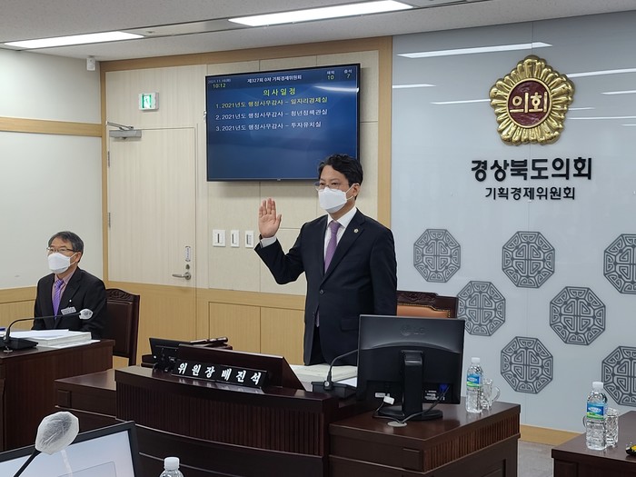 [경북=세계타임즈 한성국 기자] 경상북도의회 기획경제위원회(위원장 배진석)는 11월 16일 일자리경제실, 청년정책관, 투자유치실에 대한 2021년도 행정사무감사를 실시했다.