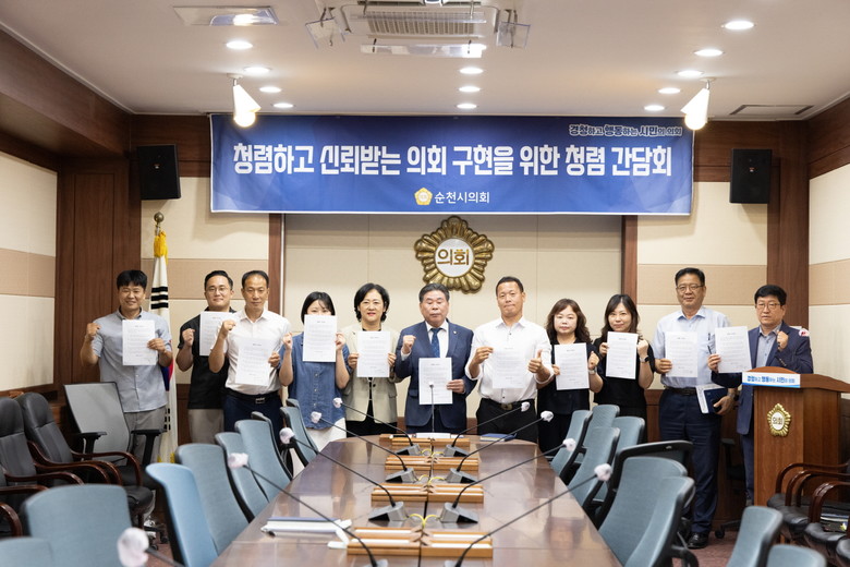 [순천시 세계타임즈=우덕현 기자] 순천시의회(의장 강형구)는 지난 25일 의회사무국 전 직원을 대상으로 ‘반부패 청렴도 향상 간담회’를 개최하고, 공직사회의 투명성과 신뢰 회복을 위한 실천 의지를 확인했다.