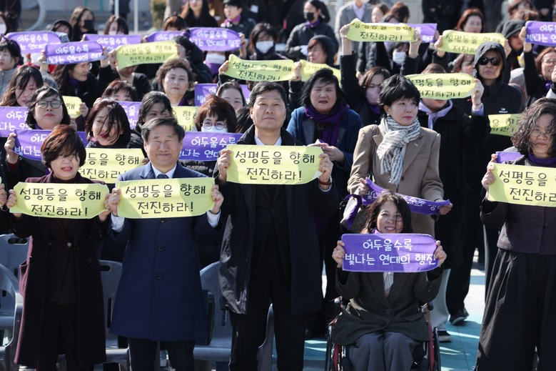 서동욱 의장은 축사를 통해 “116년 전 오늘, 미국 여성 노동자들의 생존권과 참정권 보장을 위한 외침에서 시작된 세계 여성의 날이 지금은 여성들의 인권신장을 위해 전 세계가 동참하고 있다”고 말했다.
