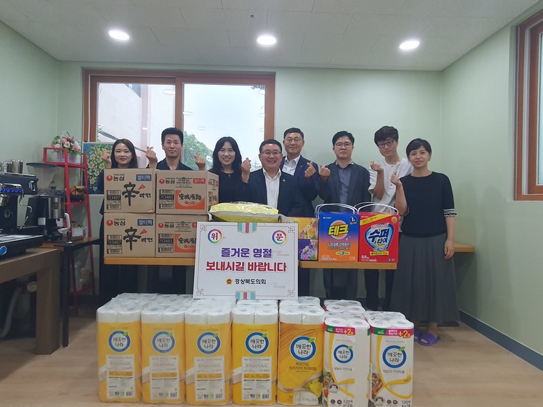 [경북 세계타임즈=한성국 기자] 경상북도의회는 추석을 맞아 도의회를 대표하여 임병하 도의원(영주)과 직원들이 9월 20일(수)에 영주장애인단기보호센터(시설장 박명숙)를 방문하고 도의회에서 준비한 위문품을 전달했다.